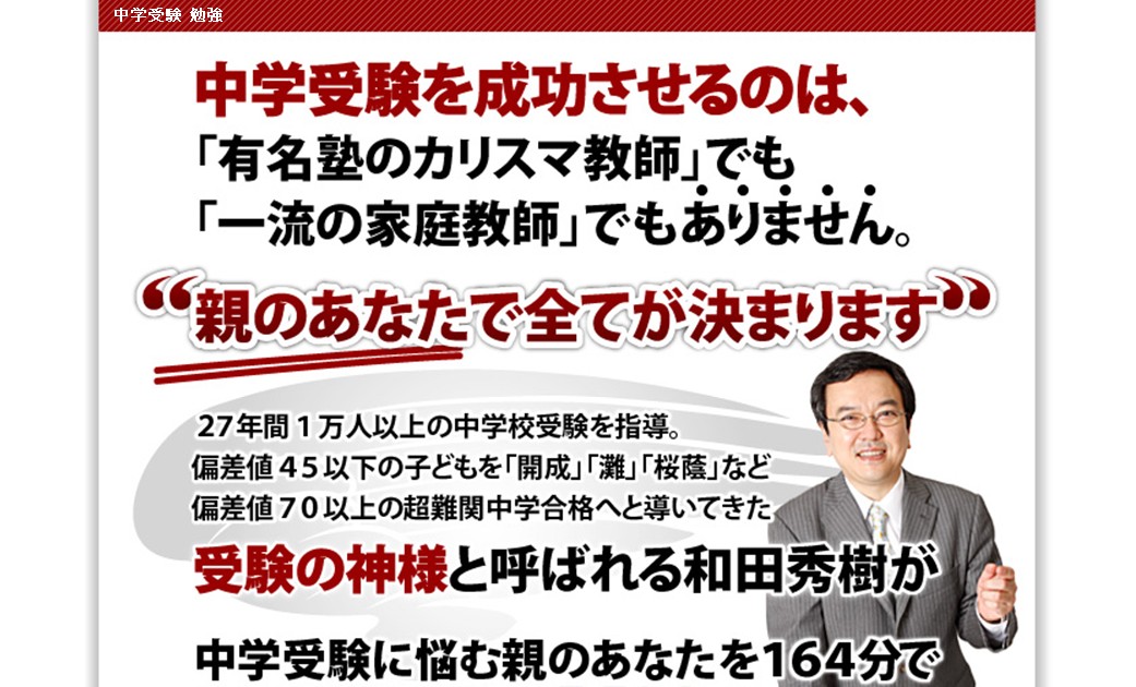 そんなことはありません。御三家のような限られた地域の人たちのためだけのノウハウではなく、日本全国どのレベルの中学受験にも対応できるノウハウです。いまあなたのお子さんが目指す中学校の合格を手に入れる、あるいはさらにワンランク上の中学校を目指す、といったような目的のためにもぜひご活用下さい。