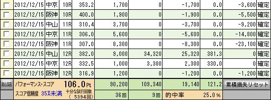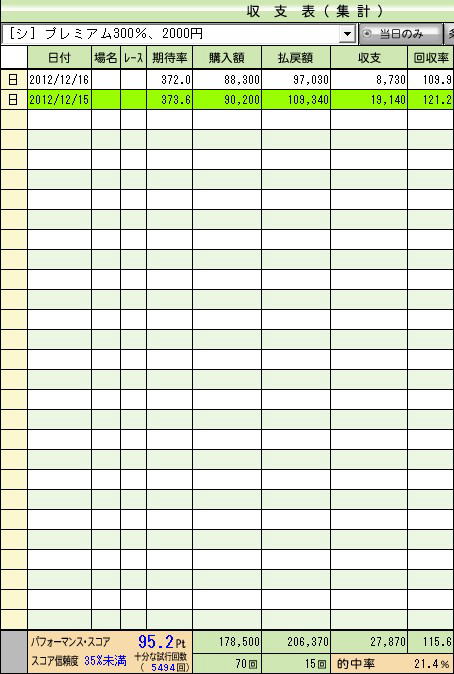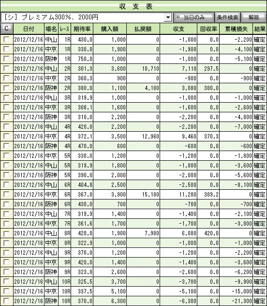 運用事例 2012年12月15日・12月16日 全レース対象に ★CrossOver【プレミアム版】を使って
