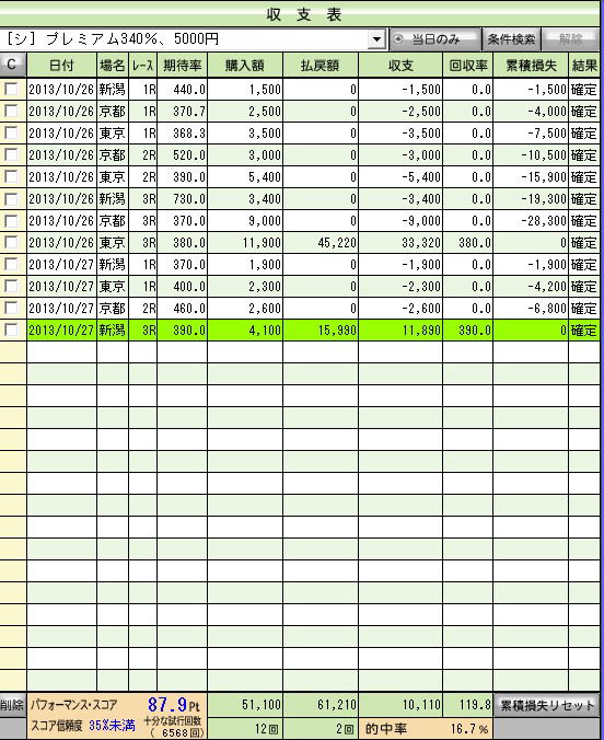 (シュミレーションモード、確定オッズ調べ)