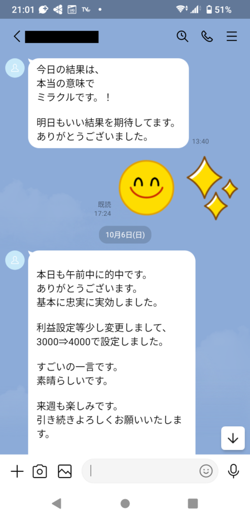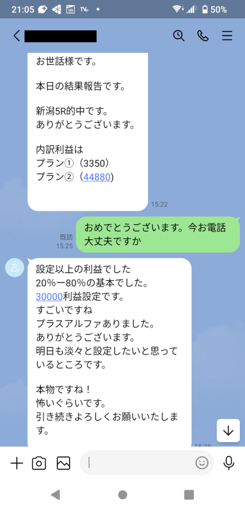 さらに、毎週のようにお電話やZOOMで連絡を取り合い、マイナス収支が出たときの対策や低リスクで収益を伸ばす秘訣まで、綿密にサポートしています。土日のレース後には結果報告もいただき、毎回感謝の言葉をたくさんいただけており、その方の真摯な姿勢が成果に表れています。