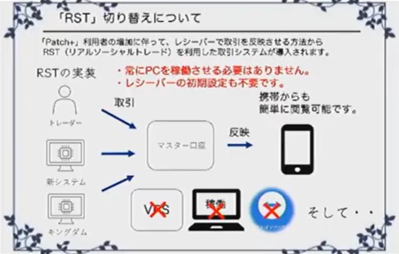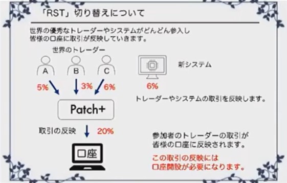 Patch+プロジェクトに参加されている方全員、RST(リアルソーシャルトレード)への切り替え作業が必要になります。