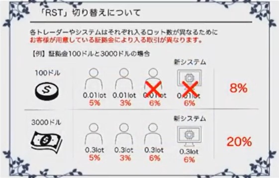 100ドルの運用資金の人はロット数が少ないうえにCトレーダー、新システムのトレードが反映されないと言った事態がおこります。