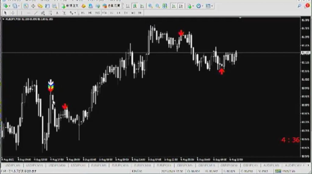 スキャルピングの基準となるのは、キングダムシグナルツールに出ている矢印になります。